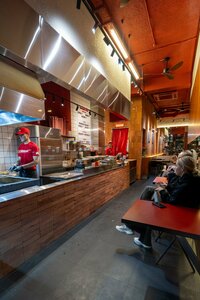 «Бобби-Кю» — это заведение быстрого питания, которое специализируется на кебабах и шашлыках. Гостям нравится, что мясо готовят прямо при них на открытом мангале, а затем заворачивают в свежий лаваш с зеленью, луком, овощами и соусом. Также в меню есть картофель, запеченный в специях на мангале, и хачапури с горячим сыром. Кроме того, посетители отмечают приятную атмосферу, дружелюбный персонал и доступные цены.