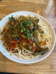 Еда очень вкусная и свежая. Вежливый и улыбчивый персонал. Если гуляете и хотите не перекусить, а основательно вкусно и не дорого поесть - рекомендую! Мы заказали Лагман по-узбекски жаркое из говядины - на двоих это объесться. Очень советую!