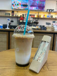 Очень дружелюбный бариста, всегда атмосферно, чисто, можно поболтать с баристой. Кофе вкусный, готовят быстро и качественно, пироженки тоже. Сиропы в наличии тоже очень вкусные