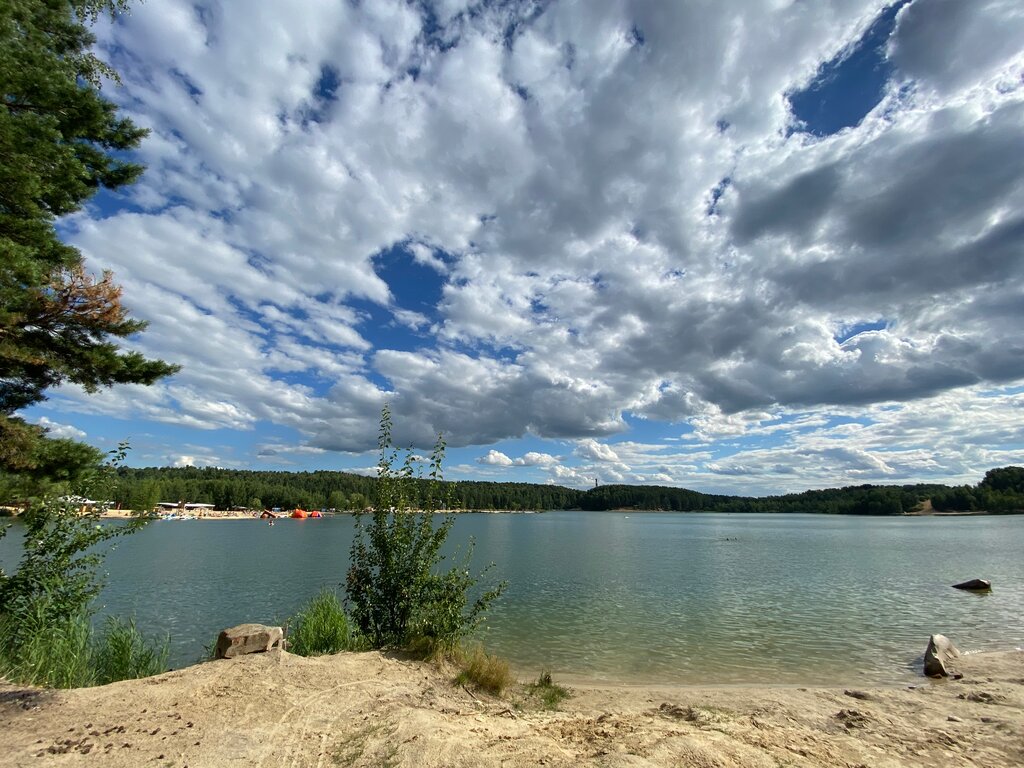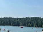 Чисто, красиво, комфортно. Но лучше приходить утром, а вечером при выезде есть сложности с парковкой. Если на автобусе ехать, до пляжа идти минут 15. Есть кафе, прокат сапов, туалеты, лежаки, волейбол, души, раздевалки и тд. Лес вокруг тоже замечательный. Еще горки для велосипедистов, камушки красивые попадаются для любителей минералов и детей. Плавают краснокнижные утки чомги, их мало, но людей не очень боятся, можно рассмотреть. Пляжи по всему периметру с заходом в воду комфортным. Можно жарить шашлыки. Можно с палатками на весь день.