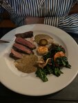 Отмечали день рождения в этом ресторане — ни разу не пожалели. Очень вкусные блюда, рекомендую попробовать из закусок куриный паштет с грушей и тартар из говядины с очень удобной подачей! Из горячих блюд очень рекомендую большой бифштекс, так как фарш прям из сочного мяса со всеми вкусностями, что они добавляют (к сожалению, без фото, так как я опять все съела из-за вкусности и красоты подачи). Так же рекомендую салат, у которого потрясающая заправка, из-за которой я даже спросила рецепт — салат с копченой утиной грудкой, персиком и горгонзолой! Честно — это отвал башки! Обслуживание на высшем уровне, все очень быстро приносят, спасибо официанту Владимиру! Нас с мужем ресторан очень впечатлил, будем сюда почаще заглядывать ❤️ UPD: пришли сюда еще раз, нас обслужил очень хороший официант Станислав, порекомендовал вкусное пиво. Заказывали стейк, салат с баклажанами, гренки к пиву, вафли, сосиски — все очень вкусно. Один из наших любимых ресторанов в Москве. Мне кажется, что тут не взять — все вкусно. Обязательно рекомендую!