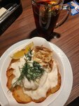 Вкусные воздушные чебуреки с разного разными начинками из нежного теста. Последний раз брали с мясом и сладкий с Дорблю и грушей. С начинокрй из Дорблю влюбилась. К нему подают ягодный соус. Всегда красивая подача. Все салаты, которые пробовали - вкусные, пирожные - тоже, напитки вполне. Людей всегда много, придется немного постоять в ожидании столика. Цены очень приемлемые. Много туристов. Публика приличная. Сняла звезду из за того, что у всей нашей компании животы очень крутило после последнего посещения)). Возможно, масло?