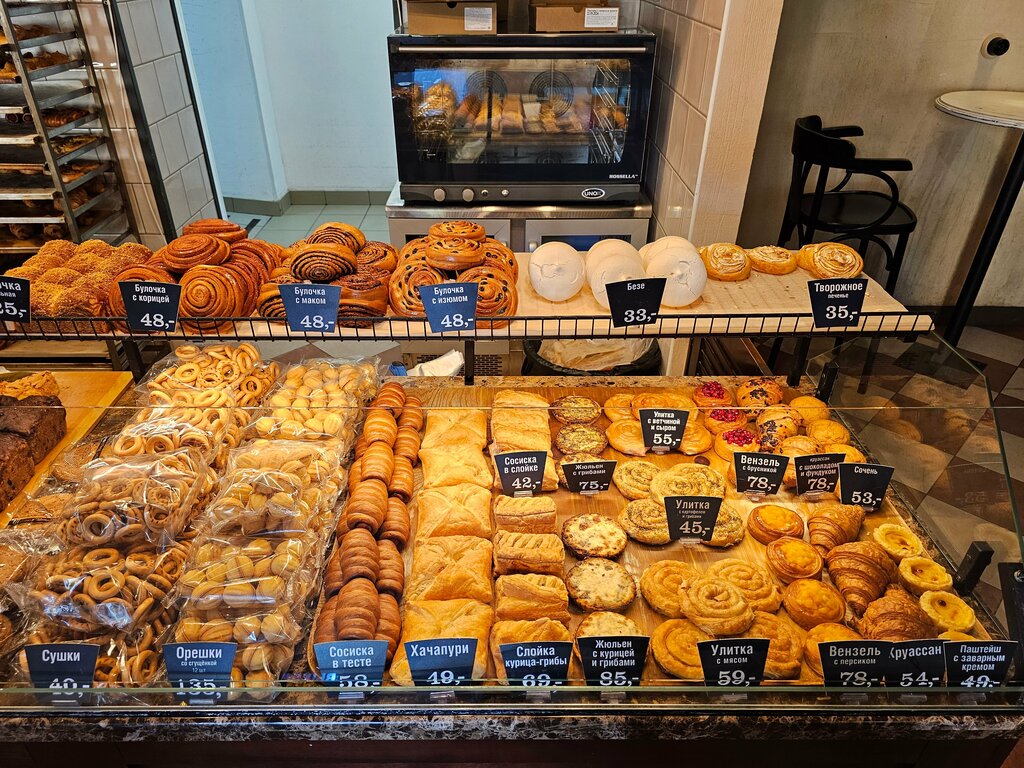 Однозначно самая лучшая булочная Питера! Вкусные и цены, и выпечка! Здесь явно стоит попробовать всё, но моим фаворитом стали булочки со сливками, нежные, сладкие, просто прелесть Пироги тоже очень вкусные! Единственный минус наверное напитки, заказала какао - дали тёплое молоко и пакетик с порошком. Была неделю в Питере, в основном только их выпечкой и питалась, дёшево и вкусно!! У булочной целая сеть, поэтому её можно найти в каждом уголке города
