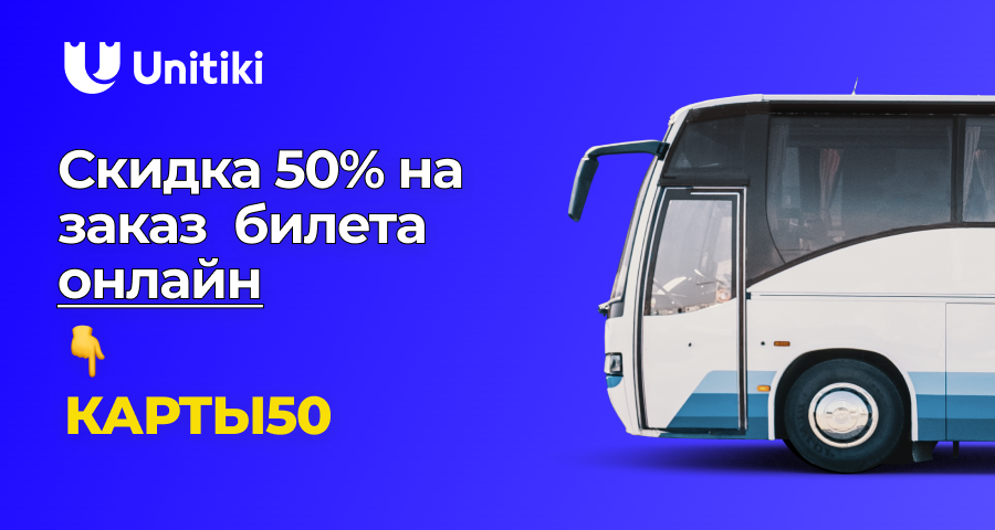 Для вас скидка 50% на автобусные билеты по промокоду КАРТЫ50