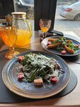 Были тут второй раз. В первый раз не были в восторге от еды, решили дать второй шанс. Сегодня заказали теплый салат с лососем, салат с креветками темпера и лимонад. Салаты были залиты литрами масла, у креветок вкуса не было вообще, в салате с креветками была уведшая зелень. Да, красивая подача, но вкус 🤮