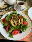 Было это в сентябре 2025 года. Приехали мы в Балаклаву, чтобы посетить подземный музейный комплекс. Очень удачно совпало, что автомобильная стоянка оказалась напротив Чебуречной. Если честно, эту Чебучечную я подсмотрела у одного блогера😊. На обратном пути мы туда заглянули, чтобы покушать. Посетителей было очень-очень много, мы даже сначала хотели уйти, но наши страхи и сомнения оказались напрасными. Официантов достаточное количество. Они очень шустрые, всех быстренько обслуживают, я даже не знаю как у них это получается. Ребятам респект! Уборная тоже достаточно приличная. Ну теперь о еде. Название "Чебуречная" говорит само за себя, но кроме чебуреков меню очень разнообразное. Еда вкусная, горячая и самое главное, на мой взгяд, не дорого! Цезарь с семгой и креветками очень вкусный, креветок и семги не пожалели! Чебуреки со всевозможными начинками. Мы выбрали классический - с мясом. Очень вкусно! Тесто не рвется, весь сок внутри. Чанах с бараниной тоже как надо - баранина мягкая, не пахнет. Мы очень вкусно покушали! Если будем в тех местах, обязательно заглянем ещё. Всем рекомендую!