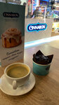 Прекрасная спокойная атмосфера и очень вкусные десерты! Взяла шоколадный ролл с вишней и очень осталась довольна: не приторно сладкий, с кислинкой от вишни и арахисовой пастой! Пожалуй теперь всегда буду здесь ожидать отправление поезда) есть розетки почти у каждого столика)