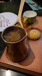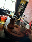 Зашли , так как хотели кофе именно из турки , в меню нашли только с какими -то добавками , у девушки бариста уточнили , есть ли без добавок ? Ответила - что да ( повторюсь , в меню не нашли) . Попросили 2 кофе ( подразумевая 2 чашки) . Нам принесли 2 джазвы , в каждой из которых минимум по 4 порции , это где столько кофе пьют ? И если у вас кофе только по джазвам , почему не предупреждаете ?) осадочек неприятный . Сам кофе неплохой