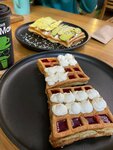 Хорошее место!!! Сразу оговорюсь - поставил 4 звезды, потому что Вафли с тунцом, ожидал от них лучшее впечатление, хотя их по отзывам - хвалят. Но увы, испортило в них неспелое авокадо, ну ребята, кто выбирает такие продукты ? Авокадо 🥑- от слово «совсем» не спелое…. Бургеры вкусные, плюс идут с картошечкой фри. Но не будим о грустном. Возможно в этот день, мне с вафлями просто не повезло 😅 А в целом отличная атмосфера 👌 Довольно обширное меню для кофейни, чем были приятно удивлены. По кофе и коктейлям нет вообще никаких нареканий. Бариста просто молодец. Латте попкорн взрывная карамель - просто бомба! Милшейки детям тоже зашли на ура!! Однозначно рекомендую к посещению данное заведение на Бульваре Победы!!!