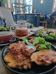 Очень вкусно. Порции огромные. В омлет или глазунью можно добавить топинги в виде лосося, бекона, овощей гриль. Кофе с тоником и малиной - топ.