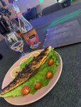 Дорадо на мангале зашел) Вкусно, разнообразное меню. Атмосферная обстановка.
