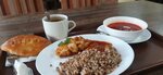 Ценники конские. Борщ, греча с поджаркой куринной, пирог с рыбой, 2 хлеба, чай 560 р. Для городского кафе перебор. Порции маленькие. Салаты на витрине весьма уставшие. Внутреннее убранство уютное но содержание кухни так себе. В зоне раздачи устраните стык полозьев. Поднос можно легко уронить.