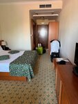 Отдыхали в отеле с детьми. Большой красивый отель с лобби в классическом стиле, не новый, но все чисто и ухожено. В номерах ежедневная уборка, качественное белье, достаточное количество полотенец, халаты, средства. В ресторане (завтрак, обед, ужин) шведский стол - все вкусно и разнообразно, в субботу был тематический ужин от шефа. Есть спортзал, бильярдная. Пляж отеля у Золотой бухты (мин 15 пешком) с бассейном, лежаки из ротанга с матрасами, под зонтами, полотенца, играет музыка. Бассейн глубокий - всегда под присмотром спасателей. На пляже есть детская зона и турник. Рядом с отелем огромный аквапарк и парк атракционов. Также отмечу работу команды отеля👍 Цены и акции в конце августа 2025 приятно удивили. Рекомендуем!