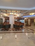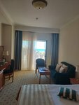 Отдыхали в отеле с детьми. Большой красивый отель с лобби в классическом стиле, не новый, но все чисто и ухожено. В номерах ежедневная уборка, качественное белье, достаточное количество полотенец, халаты, средства. В ресторане (завтрак, обед, ужин) шведский стол - все вкусно и разнообразно, в субботу был тематический ужин от шефа. Есть спортзал, бильярдная. Пляж отеля у Золотой бухты (мин 15 пешком) с бассейном, лежаки из ротанга с матрасами, под зонтами, полотенца, играет музыка. Бассейн глубокий - всегда под присмотром спасателей. На пляже есть детская зона и турник. Рядом с отелем огромный аквапарк и парк атракционов. Также отмечу работу команды отеля👍 Цены и акции в конце августа 2025 приятно удивили. Рекомендуем!