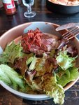 Была в этом баре дважды. После первого похода была в восторге - уютная атмосфера, хороший сервис, живая музыка. Во второй раз привела подругу. Официант, который обслуживал нас в прошлый визит, в этот раз был совершенно растерянный. Плохо протёр стол, на нем осталась то ли соль, то ли сахар. Несколько раз переспрашивал заказ, не владел актуальной информацией по бару и живой музыке. Когда принёс блюда, ещё раз переспросил, кто что заказывал. С моим заказом все было хорошо. Боул с лососем очень вкусный. А вот подруге принесли вино в очень грязном бокале. Из еды она заказала овощной буррито. Съев пол порции, она обнаружила курицу! Благо, подруга не вегетарианка. Предъявлять официант мы ничего не стали, подруга была против. Но у нас осталось очень неприятное впечатление. Не думаю, что приду ещё раз. Хотя внутри очень мило, да и блюда с напитками вкусные.