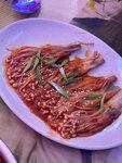яркий корейский ресторанчик в центре Казани Атмосфера тут очень понравилась, неоновые вывески на корейском, 3 телевизора с k-pop клипами, фигуры и карточки айдолов, в зависимости от ивента. Нам повезло мы попали как раз на BTS, поэтому нас встречал Юнги с Тэхеном, на экране крутили клипы и включали песни только BTS и сольники мемберов. Большое помещение, есть терасса, но столы расположены очень близко друг другу, есть зона барбекю и вип зал. Можно бесплатно брать бульон омук и воду. Еще они сделали очень эстетичное молоко в таких же бутылках как в Корее, бананового только не было. Я каждый день в Корее пила дынное молоко, и тут вкус идентичен на 100% По еде тут не сильно зашло, кимчи был вкусным, курочка суховатая, кимпаб не очень понравился, чаджанмёна нет в меню