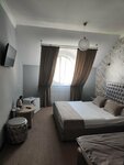 Понравился отель! Переночевали одну ночь с полным комфортом. Окна выходили во двор, поэтому было тихо. В номере всё необходимое, что заявлено на сайте отеля, просили раскладушку и дополнительный стакан - всё принесли оперативно, есть кафе, но мы не пользовались. Чистота на пятерочку, белье белоснежное, кондиционер работал, в ванной комнате гигиенический комплект и зубная щётка с пастой. Из минусов - далековато до центра и Отсутствие кафе рядом, но не далеко магазин "Пятёрочка"
