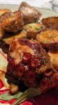 В соусе на основе сыра дор блю. 200 гр на 1 порцию: Кк 460, Ж 14, Б 26, У 40