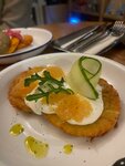 Зашли сырым октябрьским вечером погреться и перекусить, отведав чего-нибудь вкусного исходя из восторженных отзывов. В наличии оказались только бургеры ( не интересно, это мы и в другом месте поедим) и драники. Решили взять драники с щучьей икрой и с груздем. Муж заказал себе настойки. Всё оказалось очень вкусным, особенно понравилось сочетание с щучьей икрой. Плюс такие небольшие штрихи как руккола или кусочек красного маринованного лука добавили свою изюминку блюдам. Единственное, что подпортило впечатление, так это запах жареного лука из кухни , которая отделяется от столиков для посетителей дверкой по типу таверны. Причем ладно бы только запах, - глаза начали слезиться и жечь ( у меня повышенная чувствительность к луку). Двое сидевших рядом девушки, допившие свой кофе, тоже быстро засобирались и ушли по этой причине ( услышала их разговор )🤷‍♀️🤷‍♀️ Поэтому посоветовала бы обратить внимание на этот нюанс. Ну и хочется отметить, что внутри помещения там очень мало места: 4 стула стоит у окна и 6 стульев и 3 маленьких столика - у стены, то есть по сути весь зал- это часть вагончика.