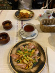 Колоритное, конечно заведение!) Зашли после премьеры, день рождения подруги. Наверное поздно! Предупредили, что кухня скоро закроется, но заказ взяли, кроме фирменных блюд. Поэтому не могу оценить полностью кухню, хотелось такого же яркого вкусового колорита. Но низкую оценку тоже не могу поставить, так как вкусно, хоть и обычно. Возможно в следующий раз повезёт)