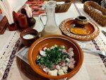 Мы остались очень довольны, уютно, атмосферно, вкусно! Обслуживание было отличное, очень рекомендую этот ресторан к посещению! Приносят комплимент - намазку из сала и хлеб двух видов, вкусный борщ, котлета по киевски, бифстроганов. Насыщенный, ягодный морс, хорошие настойки. Получилось настоящее застолье в семейном кругу.