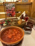Начну с того, что не понравилось. Персонал показался не приветливым. Посадили за стол у стенки, хотя было достаточно мест по центру зала, мимо которого ходили официанты и, из-за узкого пространства, часто задевали. В нутри все выдержано в определённой стилистике. Ассорти сала неожиданно и к глубочайшему сожалению, разочаровало. Теперь к положительному. Борщ... Хотя не так. БОРЩ! Исключительно ради него стоит посетить это заведение. Нигде более не пробовал такой наваристый, плотный, с действительно большим количеством мяса(не рубленное кубиками, а "рваное"). Подавался с овощной намазкой и свежим хлебом. Котлета нежная, сочная, тает как масло. Если вам необходимо не просто вкусно, но и сытно поесть, то не стоит обращать внимание на скромные минусы данного заведения и обязательно посетить его, чтобы было с чем сравнивать другие места с аналогичной кухней.