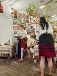 Приятное место. Зашли посидеть компанией, вышло очень атмосферно. Для ценителей русской, украинской и белорусской кухонь отлично подойдёт это заведение. Блюда и напитки вкусные, подача может быть в формате шоу. Попали в акцию, муж выиграл официанта в камень-ножницы-бумага и получил квас в подарок. 🤭 А еще угостили перетёртым салом. Вечером приходили музыканты и пели песни под баян. Посещением остались довольны, на летней веранде чудесно провели время. ✨