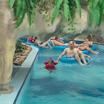 Хороший аквапарк, есть чем заняться и детям и взрослым. Пока дети на горках, взрослые в джакузи, в бассейне с волнами или по реке поплавать. Река очень понравилась, не один круг проплыли. Есть разные кафе, цены не дешёвые конечно, но перекусить можно. Брали на 3 часа, вполне хватило отдохнуть. Наверху "пляж на крыше", полежали в джакузи на свежем воздухе. Единственный минус лично для меня очень скользко в аквапарке, особенно без обуви, можно травмироваться.