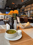Ресторан с вкусной домашней итальянской едой. Стильные кресла, дрова в барной стойке, есть разукрашки для детей. Съела вкусный суп с нежнейшей говядиной развалистый и щавелем и салат легкий с голубикой, авокадо и шпинатом. Вкусно, понятно, быстро. На сладкое попробовали какао на кокосовом молоке с перцем Чили и какао - круто) хоть и остро. Если любите какао, попробуйте) А еще здесь вкуснющие круассаны с лимоновой начинкой и меренговой шапочкой)