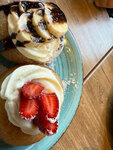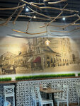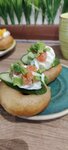 Пышки нам уже знакомы по пышечным Питера. Но здесь более цивилизованная подача. И с продуктом поработали. Если обычные пышки с пудрой стоят по 30₽, а картофельные - 45₽. То другие, с наполнением уже переваливают за сотку. С бананом, киви, голубикой, персиком, клубникой. Так же с ветчиной и сыром и карельской форелью. Высокий в потолок, шикарный пол из старой плитки, рисунки старого города, настенные часы и неубиваемая садовая чугунная мебель на улице. Подойдёт для перекуса.