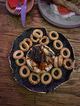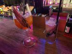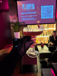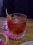 Дизайн стильный, сидишь в неоновом свете. Атмосфера вполне для инста фотографий. Нас встретила очаровательная блондинка, словила мой вайб. Рекомендации были вполне удачны, шутки - разрыв)) а вот официанты, кто был после нее — уставшие, невеселые, счет со второй просьбы принесли. Камамбер с еловым вареньем и сушками - очень оригинальное и вкусное решение. Понравился. Печеный баклажан пресноват. Негрони каждый - разные, тут уж каждому на свой вкус. Для меня топовым останется классический.