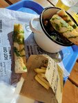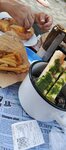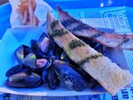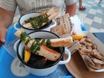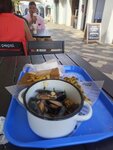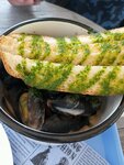 Очень вкусные мидии! С удовольствием лакопились, когда шли на пляж и обратно. Вместе с мидиями дают картошку-фри и ломтики хлеба с домашним песто. В наличии вкусное разливное нефильтрованное пиво и устрицы