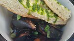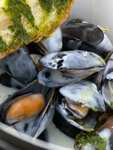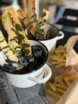 Божественные мидии в сливочно-чесночном соусе. Достойная порция, багет очень вкусный. Готовят при вас. Однозначно рекомендую. Приятный персонал, что тоже не маловажно.