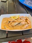 Лавка, территория, как только не называют лавочки с мидиями и морепродуктами. Готовят откровенное хрючево. Рис к супу !!!, бывает и в суши кладут рис так себе. Но это не рис , а рисовая каша из детского сада 90х годов. Сливочный суп - молоко с водой - без специй, 2 мидии , 1 разваренная креветка , что-то похожее на кусок кальмара. Креветки - дно… пересолено, переварено, через три минуты тарелка с соусом не выдержала, все потекло по подносу. Не тратьте деньги и время! Девочки явно не умеют готовить и тех.карта не отработана. Высокая оценка и хвалебные отзывы - считаю написаны самостоятельно работниками.