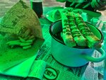 Третий год подряд покупаем мидии. На текущий год добавились новые соусы, меню расширено. Взяли все виды мидий под соусами Том Ям, перечный, Дорблю,томатный,чесночный. Багеты с песто, картошка фри. Сломали с детьми за обе щеки. Очень вкусно и сытно. В порции примерно 18-20 мидий. Рекомендую однозначно!!!