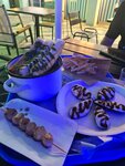 Ужас Мидии "блю-чиз" просто отварены и залиты сливками, половина порции закрыты, не раскроешь, креветки а-ля в чесночно-сливочном соусе, просто залиты соевым, есть можно, но зачем этот обман, тар-тар из гребешка - это вообще что-то очень не вкусное, мидии тоже, самое вкусное в этом месте -это соус песто на сухариках, а так - очень плохо