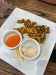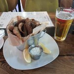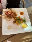 Очень хорошее оформление заведения, звездочки чисто за это. Подают быстро. Не понравилось блюдо Фритто мисто. Ну совсем уж непрезентабельно и невкусно. Оно горькое. То ли из-за сочетания морепродуктов и кляра, то ли жарили в старом масле. Мидии в сливочно-чесночном соусе тоже огорчили. Есть ощущение, что вес на выходе сказка, и подают взвесив с посудой, салфетками и перечницей. Из вкусного только багет.