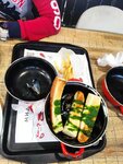 По специализации заведения: чудесная подача мидий в кастрюльке (хорошая порция), хлеб с травами можно вкусно макать в соус, рамен тоже понравился. По еде в целом все было вкусно - и овощи, и красный бархат (свежий, нежный, не приторный). Вначале немного огорчило, что заранее забронировали столик, но почему-то по приходу предложили сесть за любой другой свободный, но в итоге сидели в приятной локации. Вежливые ребята работают, вовлечённые, что очень приятно. Несмотря на полную посадку и большую загрузку, были внимательными.