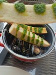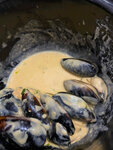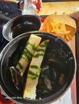 Брали мидии в сливочно сырном соусе, приносят в кастрюле с 3мя багетами и картошкой фри. Порция очень большая, если берете её, то другое что-то можно уже не заказывать 🤭 Очень вкусно)) мидии и соус очень вкусные, его так много что в конце уже его просто ложкой ели 😂 Жаль что нашли это место в конце отпуска, так пришли бы ещё попробовать мидии с соусе Том-Ям) Если будем ещё раз в Анапе, то обязательно посетим это Мидийное место ))