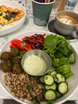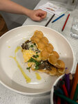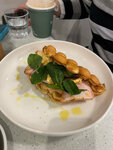 Приятное место. Симпатичный интерьер, растения, светильники. Брали вафли со скремблом и пастрами из индейки, суп харира, запечённые баклажаны. Суп подают с хлебом собственного приготовления. Вафли мягкие, сытные и вкусные. Баклажаны не понравились, слишком солёные и холодные. Основные блюда ждали довольно долго, но это был выходной, все столики заняты.