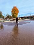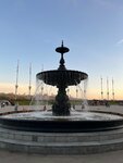 Были с семьей в майские праздники. Очень странные ощущения от посещения. Само здание в процессе ремонта фасада, причем работы весьма сомнительного качества. Фонтан работал, но запах затхлой воды и тины от него распространялся на приличное расстояние. Зона для игр и прогулок с детьми тоже несуразная....много качелей-скамеек это плюс, но все остальное странно....к примеру длиннющая качель из бревна, зашитого в металл.