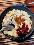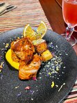 Хороший ресторан в Суздале, заезжали в город прогуляться и зашли на ужин. Столик предварительно не бронировали, все места были заняты, но минут через 10-15 получили звонок из ресторана, свободный столик нашёлся. Обслуживание в ресторане хорошее, сотрудники отзывчивые. Блюда разные. Некоторые очень впечатлили, а некоторые расстроили. Салаты не понравились совсем, ни один. Вареники с огурцом были необычными, сладкими, муж оценил, мне хватило одной штуки на пробу. Очень понравилась закуска с запечённым камамбером, горячее блюдо с запечённой тыквой и невероятно вкусный десерт с ягодами, лепестками миндаля и хрустящей карамелью, в котором, как оказалось, основу составляла манная каша (ни за что бы не догадались - мы при попытке угадать ингредиенты метались между густым йогуртом, сливками и крем-чизом). Ресторан сумел приятно удивить, очень рады, что выбрали именно это место для ужина
