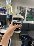 Работают в выходные с 8:00, бариста пришел только в 8:20. Бывает всякое но работники пососедству говорят это постоянно. Сам бариста вежливый. Ещё один минус – четверти кофе просто нет в стакане… Заявлено 600мл, а по факту около 500…