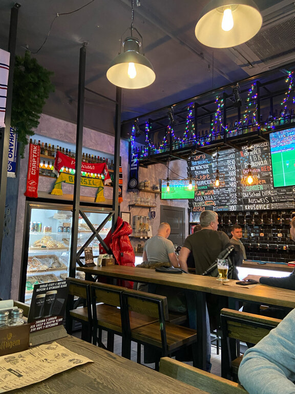 Зашли случайно, место очень приятное, бармен знает свое дело, повар приготовил очень вкусные бургеры, есть разливное пиво и крафтовое в банках. Есть разные настольные игры и карты, диваны приятные, по телекам крутят футбол