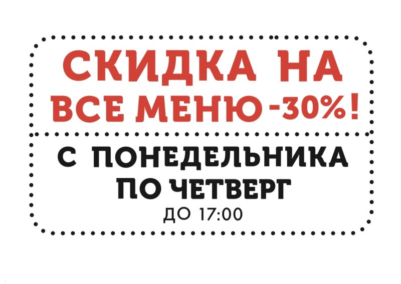 Время ЛАНЧА! С 13:00-17:00 скидка на всё меню 30%