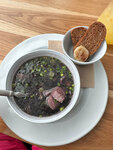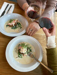 К сожалению любви не случилось( Ресторан такого формата уже на входе формирует некоторое ожидание, что тебе там будет вкусно, красиво и атмосферно. Виды из панорамных окон и интерьер красивые, персонал вежливый, а вот с едой нам не повезло, видимо. Брали суп из кролика с ягодами, думали будет интересное сочетание, но оказался кролик в компоте, рыбный суп отличался только странным цветом и ценой от обычной ухи, с камбалой тоже не повезло, тут просто рыба оказалось невкусной и беспощадно залитой соусом( Дали шанс десерту и не зря, вот в нем было отличное сочетание шоколада, грибного соуса и можжевела, и плюсую за лимонад с морошкой. Очень хочется, чтобы ребята поработали над блюдами и качеством продуктов, чтобы была возможность еще к ним вернуться.