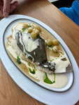 Посмотреть виды можно. Идти в ресторан не стоит. Принесли зубатку. Я не думал, что зубатка может быть такой сухой. Сошлись на мнении, что это вовсе не зубатка. Ребенку заказали по приходу мороженое. В итоге все взрослые уже поели и выпили пиво, а мороженого так и не было. Потоооооом только выяснилось, что его и нет. Человека три или четыре официанта на 12 столов, но нашего приходилось звать через остальных. Вообщем за такие деньги оно того не стоит от слова совсем. Единственный плюс. За зубатку( т.е. треску) и за отсутствие мороженого предложили выбрать два десерта на выбор. За счет заведения. Вообщем итог. Из шестерых на вопрос пойдем туда еще? В один голос НЕТ.