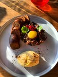 Место меня очень впечатлило 🥹 Чувствуется, что над меню работал профессионал. Цены для таких блюд приемлемые. Мы бронировали столик за 3 дня, и была полная посадка в летний сезон) Депозит 10.000 с живописным видом, есть столики с меньшим депозитом. Если вы хотите отведать оленину, то только сюда!🫶🏻 Заказывали: вино и стартеры - солонину из оленины (даже взяли с собой порцию), эклер с камчатским крабом (лёгкий стартер, не мое блюдо), основное: тар-тар из оленины, олений язык, гребешки и камбалу. Идеальное сочетание вкусов. Я и муж были в гастрономическом экстазе. Так как у меня был день рождения, мне принесли десерт, он был тоже невероятный. К нему заказали двойной эспрессо, принесли с водой, как надо 🫶🏻👌🏻 Официанты очень добрые и милые. Нас красиво сфотографировали, прям заморочились🫶🏻 После мы погуляли и спустились) Подъемник стоит 320 руб за человека в обе стороны, но это того стоит!