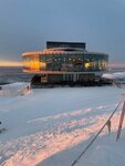 Ещё из города сквозь облака бросается в глаза подобие летающей тарелки на вершине горы Айкуайвенчорр. Это ничто иное, как высокогорный панорамный ресторанный комплекс «Плато» на высоте 820 метров. Давайте немного расскажу, что он собой представляет. В здании 2 этажа. Три гостевые зоны: панорамный ресторан, кафе и бар. ✳️Начнем с ресторана. Так как это уникальное место, пользующееся популярностью у гостей города, в ресторане предусмотрено бронирование столиков. Для этого на сайте вы можете узнать наличие свободных столиков нужной категории на нужную дату. Бронирование «платное». Что за категория? И почему платно? Что всё это значит, спросите вы? 🤔 Это самый высокогорный ресторан на северо-западе нашей страны. Уютная атмосфера, высокая кухня и потрясающие виды на город, заснеженные склоны величественных Хибин. Шеф-повар ресторана имеет звезду Мишлен. А в меню представлены блюда арктической кухни, классической европейской кухни и большой выбор вин. Всё очень вкусно и изысканно. А ещё желающих много, а ресторан небольшой и уникальный. Поэтому здесь и предусмотрены такие условия. Чтобы забронировать столик, нужно заполнить форму на сайте: выбрать дату и время, номер стола на схеме зала и внести сумму депозита. Сумма депозита зависит от выбранного места расположения стола и количества гостей. Так, стол у окна — 15 000 рублей, в середине зала — 10 000 рублей, а за небольшими столиками — 4000–5000 рублей. Максимальное время нахождения за столом — не более 2 часов. Максимальное количество гостей за столом — 6 человек. Но если вас чуть больше, просто укажите это в комментариях при бронировании. Сумма депозита пойдёт в счёт вашего заказа. Если вы не забронировали заранее, и в ресторане есть свободный стол, вас обязательно посадят за него и обслужат. Ещё условие по депозиту: доплатить можно, а «сдачу» получить — нет. То есть гости могут покушать на сумму депозита. ✳️На первом этаже находится панорамный бар с открытой террасой. В меню: напитки, лёгкие закуски, чай, кофе. Сюда забегают согреться туристы и горнолыжники. Высокие стулья у окна, мягкие кресла-мешки. Здесь не требуется бронирование, и находиться можно неограниченное время. Сиди и смотри на горы... Лично я всегда захожу сюда выпить чай или кофе. ✳️Пообедать можно в кафе со шведским столом. Оплата производится один раз при входе в кафе. А дальше ешь сколько влезет... В меню кафе: первые и вторые блюда, салаты, десерты и напитки. ✔️Стоимость посещения: Взрослый билет 1200 рублей Льготный билет для детей и пенсионеров 600 рублей Дети до 6 лет бесплатно ✔️График работы ресторанного комплекса: Бар 10:00 - 19:00 часов (при вечернем катании в пятницу-воскресенье время работы бара продлевается до 22:00 часов) Кафе-бистро 12:00 - 18:00 часов Ресторан 12:00 - 23:00 часов ✔️Как добраться до ресторана? Подняться на канатной дороге можно с Северного склона в часы работы горнолыжного курорта «Большой Вудъявр». Покупаете билетик в кассе (от 320 до 650 рублей в зависимости от сезона), и пока кабина едет наверх, вы любуетесь видами. Что делать, если канатная дорога уже закончила работу или закрыта из-за погодных условий? При таких условиях только при бронировании столика вас поднимут (а потом и спустят обратно) на ратраке.