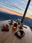 Мне кажется, в этом месте не важно, что ты ешь и пьешь, главное это вид! Такой шикарный обзор на горы и город просто завораживает. Попробовали шоколадный брауни и десерт с морошкой. Вкусно Официанты отлично знают меню и действительно интересуются мнением гостей